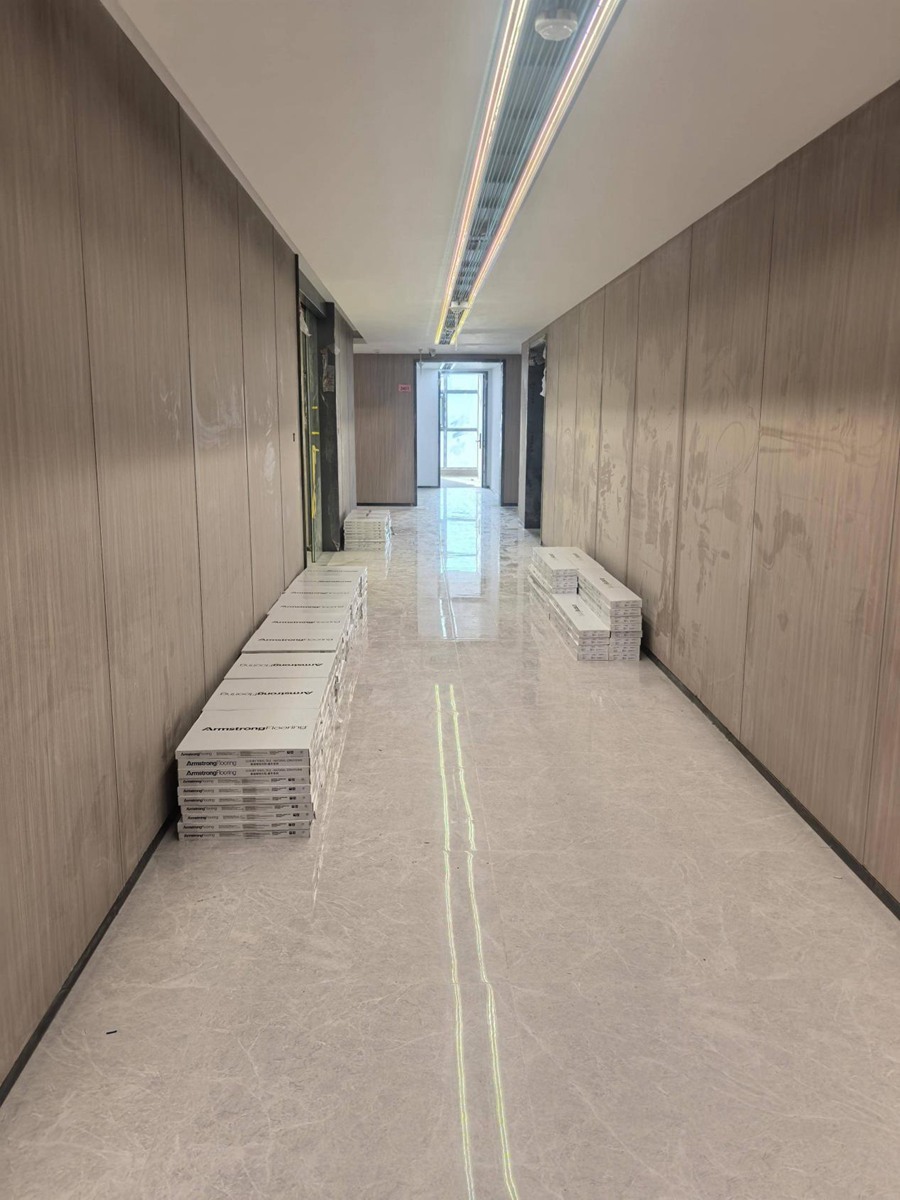 該項(xiàng)目地面彈性地板供貨及施工由貴州品質(zhì)恒創(chuàng)公司承接,使用阿姆斯壯高級(jí)彈性片材2萬(wàn)余平方米,鋪裝效果得到施工單位及業(yè)主一致好評(píng)。